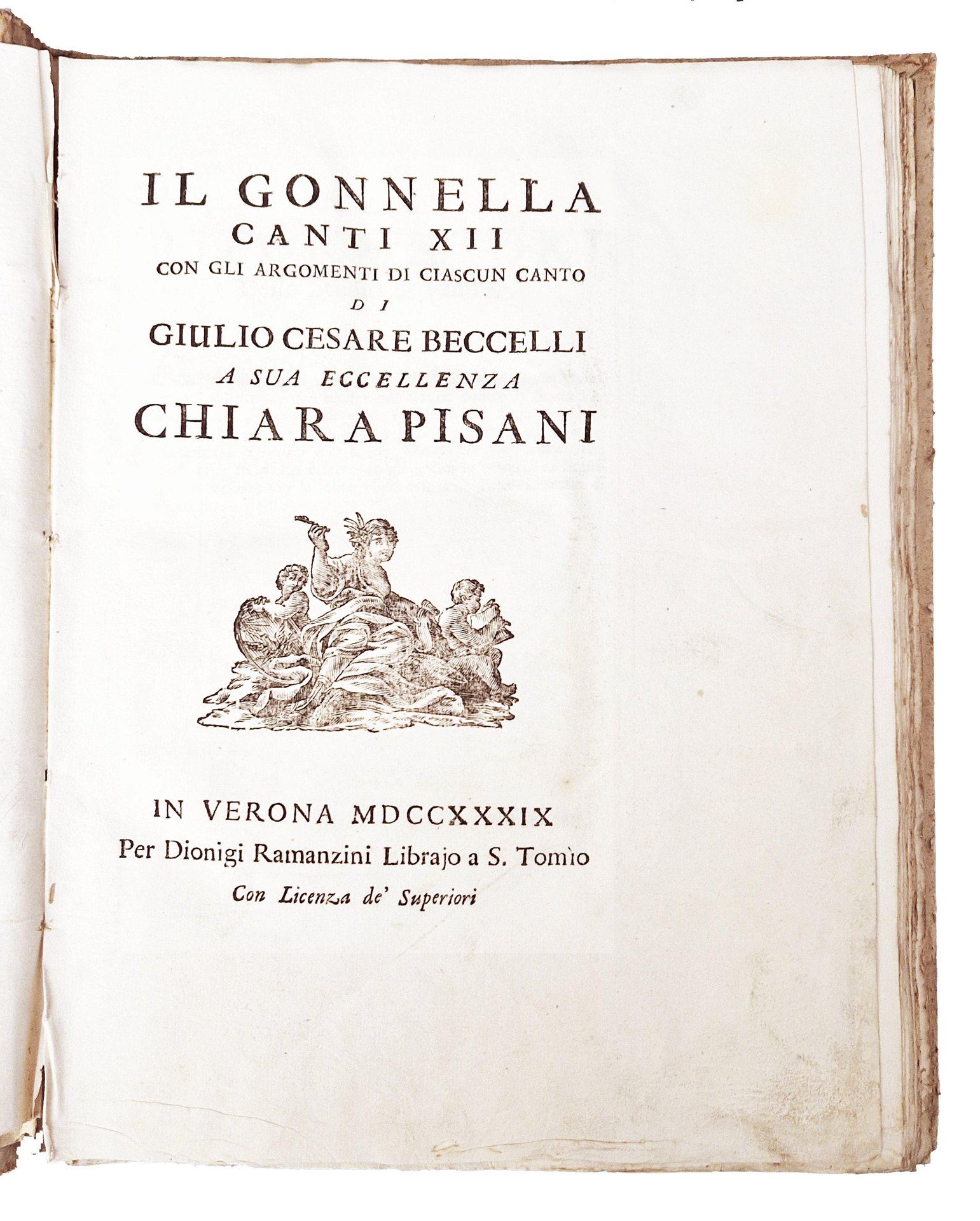 Il Gonnella canti XII. con gli argomenti di ciascun canto di Giulio Cesare Beccelli a sua eccellenza Chiara Pisani.