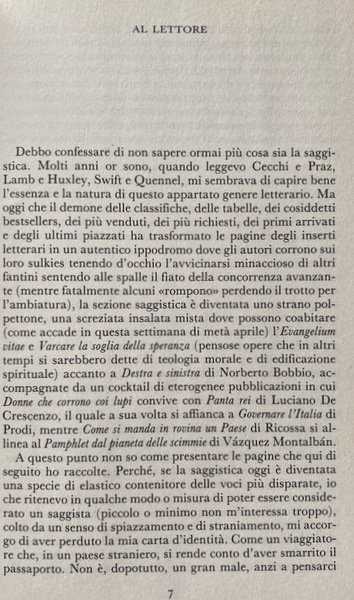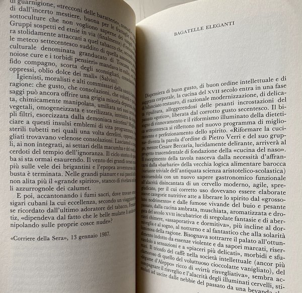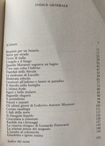 Soggetti: Società, Scienze Sociali, Giornalismo, Saggistica, Saggi, Articoli, Editoriali, Meditazioni, Attualità, Corriere della Sera, Cronaca, Post-inferno contemporaneo, Ritratti caricati, Quotidianità, Vizi, Problemi, Studi culturali, Regimen sanitatis, Corpo, Regimen salutis, Anima, Salutismo, Ortoressia, Ossessioni, Compulsione, Estetica, Cibo, Fenomenologia della nutrizione, Forma, Perfezione, Alimentazione, Bellezza, Chiesa, Religione, Medioevo, Falsi Miti, Credenze, Superstizione, Sindrome di Lucullo, Formaggio, Tabacco da fiuto, Curati, Libido, Sessualità, Castità, Astinenza, Fumare, Fumo, Cioccolata, Digiuno, Quaresima, Gesuiti, Cura, Scienza, Eterodossie eubiotiche, Beauty farms, Simbolismo, Bilancia, Virtù, Vino, Alcool, Bere, Mangiare, Dimagrire, Ingrassare, Invecchiare, Canoni estetici, Donne, Piaceri quotidiani, Sacro, Profano, Demonizzazione, Apparenza, Paure, Diete, Pregiudizio, Magrezza, Abbronzatura, Tempo, Vita quotidiana, Lifestyle, Costume, Edonismo, Anni Ottanta, Anni Novanta, Libri Vintage Fuori catalogo, Raccolte, Antologie, Cultura moderna, Elzeviri, Terza Pagina, Quotidiani, Giornalisti, Pseudodoxia epidemica, Saggio breve, Ignazio di Loyola, Storia sociale, Esercizi loyolani, Peste, Malattie, Contagio, Untori, Ludovico Muratori, Etica, Teologia, Bagni caldi, Aromi, Odori, Cucina, Gastronomia, Gourmet, Gusto, Palato, Leonardo Fioravanti, Chirurgia, Euclide, Colesterolo, Grassi, Igiene intima, Ginofobia, Vallisneri, Pietro Verri, Cesare Beccaria, Ippocrate, Goethe, Marsilio Ficino, Tomaso Garzoni, Giorgio Manganelli, Lutero, Savonarola, Paracelso, Rabelais, Sant'Agostino, Boccaccio, Campanella, Society, Social sciences, Journalism, Non-fiction, Essays, Articles, Editorials, Meditations, Current affairs, Chronicle, Contemporary post-hell, Uploaded portraits, Everyday life, Vices, Problems, Cultural studies, Body, Soul, Healthcare, Orthorexia, Obsessions, Compulsion, Aesthetics, Food, Nutrition phenomenology, Shape, Perfection, Nutrition, Beauty, Church, Religion, Middle ages, False Myths, Beliefs, Superstition, Lucullus syndrome, Cheese, Snuff, Cured, Sexuality, Chastity, Abstinence, Smoking, Chocolate, Fasting, Lent, Jesuits, Care, Science, Eubiotic heterodoxies, Symbolism, Libra, Virtue, Wine, Alcohol, Drink, Eat, Lose weight, Grease, Aging, Aesthetic Standards, Women, Daily pleasures, Sacred, Profane, Demonization, Appearance, Fears, Diets, Prejudice, Thinness, Tan, Time, Daily life, Costume, Hedonism, Eighties, Nineties, Out of print books, Collections, Anthologies, Newspapers, Journalists, Short essay, Social history, Loyolani exercises, Plague, Diseases, Contagion, Plagues, Ethics, Theology, Hot baths, Aromas, Smells, Cuisine, Gastronomy, Taste, Palate, Surgery, Euclid, Cholesterol, Fats, Intimate hygiene, Gynophobia, Hippocrates, Luther