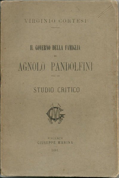 Il governo della famiglia di Agnolo Pandolfini. Studio critico.