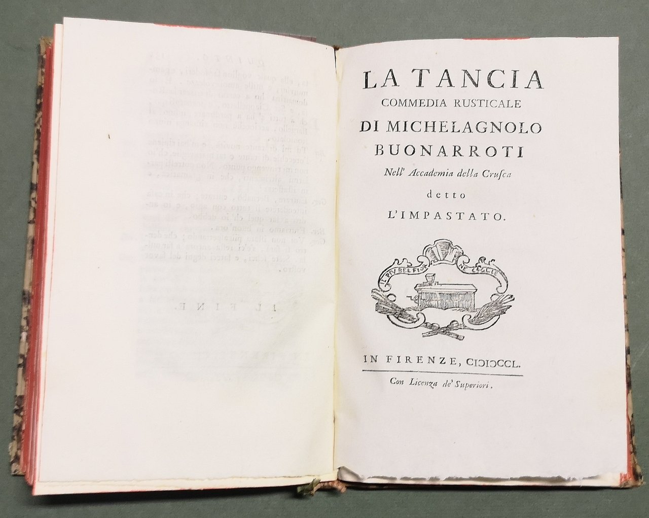 Il Granchio. Commedia.- (Segue, del medesimo:) La Spina. Commedia. - (Legate con:) BUONARROTI, Mich. La Tancia. Commedia rusticale. (In: Teatro Comico Fiorentino, tomo VI).