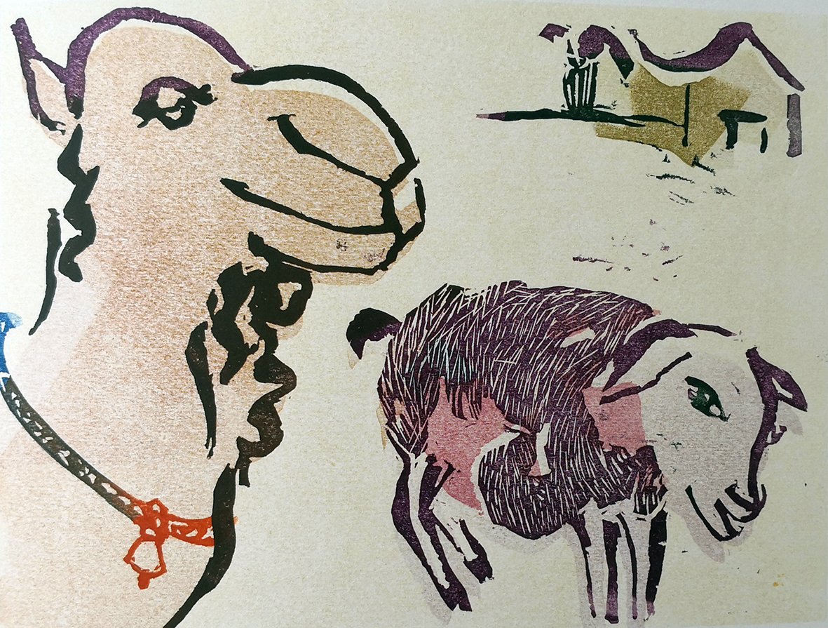 8° ad album (25x35); pp. 24 non num. su carta a mano pesante, con 8 linoleum originali a colori. Ril. m.pelle edit. con titoli ed altro linoleum a colori al piatto. Favola cinese, brevi testi tradotti a fronte delle illustrazioni. Bella e curata edizione limitata a 40 esempl. numerati (oltre a XV num. romana), firma dell'artista al colophon.<BR>(vedi riproduz.)