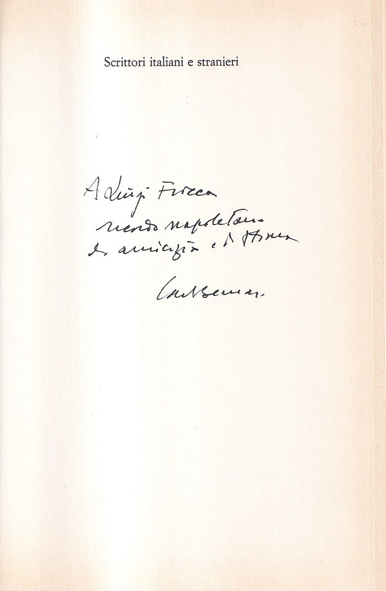 Prima edizione. Collana "Scrittori italiani e stranieri". Dedica autografa dell'Autore a Luigi Fiocca, cronista parlamentare napoletano vicino al milieu politico e culturale romano del secondo Novecento - Volume in copertina rigida con sovraccoperta, 202 pagine. Esemplare in ottime condizioni.