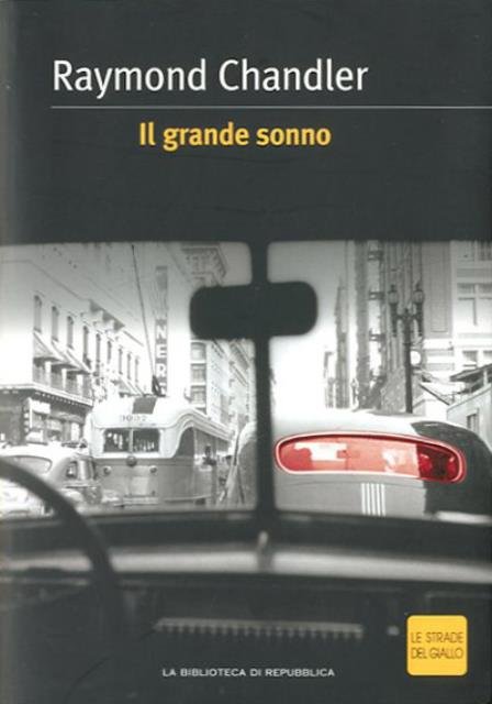 234 p. ; 21 x 14 cm. La biblioteca di Repubblica. Le strade del giallo, 18. "Il grande sonno" è un romanzo poliziesco scritto da Raymond Chandler nel 1939. Viene considerato dalla Crime Writers' Association il secondo miglior romanzo giallo di tutti i tempi. Si tratta del romanzo hardboiled per antonomasia. Il libro è il primo della serie in cui indaga il detective privato Philip Marlowe. Il titolo è riferito alla morte ed è la frase finale dell'opera. L'investigatore privato Philip Marlowe viene chiamato presso la villa di un generale paraplegico in pensione, Sternwood, la cui ricchezza proviene da alcuni pozzi petroliferi nei dintorni di Los Angeles ormai esauriti. Il generale gli richiede di condurre delle indagini a proposito di un biglietto ricattatorio inviatogli da Arthur Gwynn Geiger, titolare di una libreria antiquaria: nel biglietto si fa riferimento a una cambiale consegnata a Geiger da Carmen, la figlia minore di Sternwood; parlando col generale il detective apprende anche che Terence "Rusty" Regan, marito della figlia maggiore Vivian, è scomparso da circa un mese senza lasciare traccia. Marlowe accetta l'incarico e prima di lasciare la villa incontra anche l'affascinante Vivian, curiosa di conoscere il reale motivo della visita di Marlowe a suo padre. Il detective inizia le indagini sulla libreria scoprendo subito che si tratta solo di un'attività di facciata che copre in realtà un traffico di materiale pornografico. Marlowe segue Geiger e si apposta all'esterno della casa; dopo un po' l'uomo riceve una donna e più tardi si sentono dei colpi di pistola e delle urla: il detective fa irruzione e trova Carmen Sternwood, nuda e visibilmente sotto l'effetto di droga e Geiger morto accanto a una macchina fotografica nascosta dentro un totem. Nei giorni seguenti avvengono altri delitti: viene trovato morto dentro un'automobile finita in mare l'autista degli Sternwood e anche l'ex partner di Carmen, Joe Brody, in combutta con Geiger, viene ucciso in casa. L'idea che si fa strada nella mente di Marlowe è che la catena di omicidi sia legata in qualche modo alla scomparsa di Rusty e ai traffici illegali di Eddie Mars, il proprietario del casinò dove Vivian sperpera il denaro di famiglia. Titolo originale dell'opera: "The big sleep". Traduzione di Oreste del Buono. Supplemento a "La Repubblica". Brossura editoriale, coperta in cartoncino flessibile con bandelle, illustrata a colori. Codice libreria 5066.