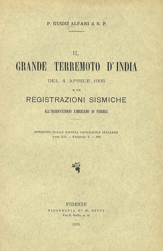 Il grande terremoto d'India del 4 aprile 1905 e le registrazioni sismiche all'Osservatorio Ximeniano di Firenze.