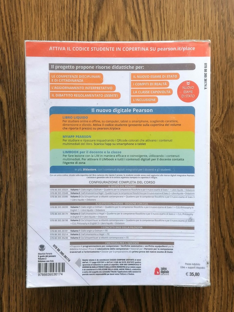 Il gusto del pensare Costruzione volume 2 + quaderno delle competenze filosofiche e per nuovo esame di stato + philosophy in englishdi Maurizio Ferraris e Laboratorio di OntologiaEditore: paraviaData di Pubblicazione: 2019 EAN: 9788839535948, 9788839536174 ISBN: 8839535942 Formato: brossura Condizioni del libro Ottime condizioni, minimi segni d'uso, munito di fodera protettiva trasparente