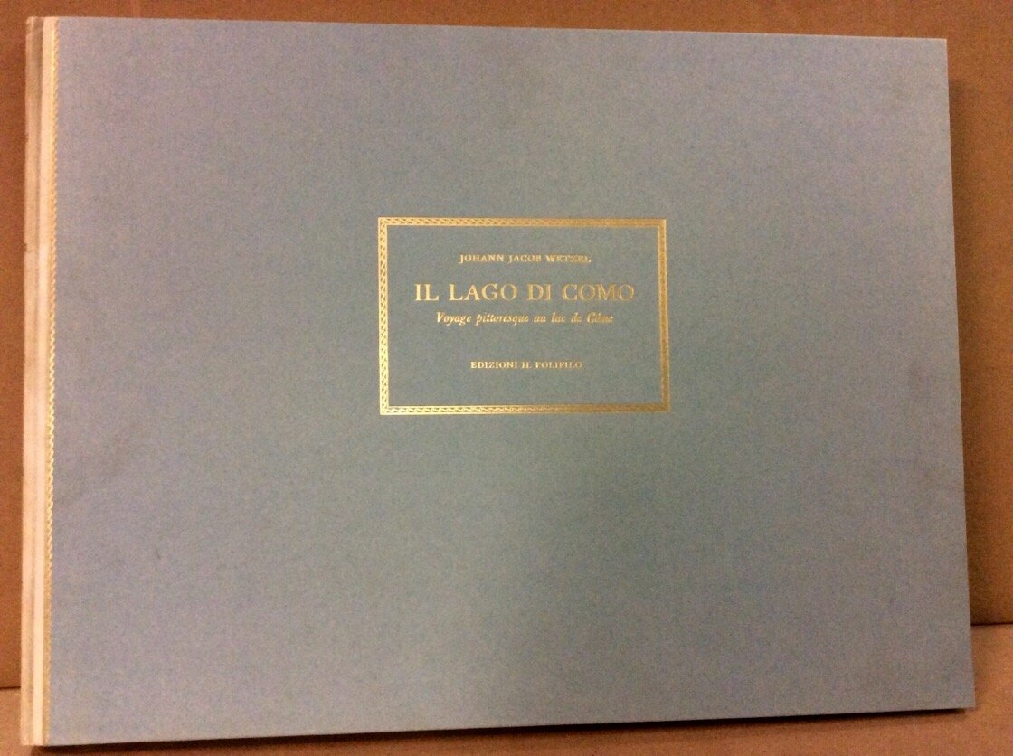In-4 p. oblungo (mm. 310x420), mz. pergamena editoriale, custodia, pp. 127,5, con 15 tavole a colori su cartoncino, tratte dalla celebre edizione originale del 1822: sono riproduzioni di vedute di borghi e ville sulle rive del lago, riprese dal vero con fini incisioni acquarellate. Bella edizione su carta forte speciale di Cernobbio, testi in italiano e francese. In ottimo stato (nice copy).