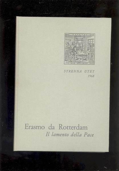 IN 8°, pp.207, COPERTINA EDITORIALE IN TUTTA TELA RIGIDA ILLUSTRATA CON TITOLO<BR>RIPORTATO ANCHE AL DORSO. OPERA FACENTE PARTE DELLE STRENNE UTET PER IL<BR>1967 - 68, CON UN SAGGIO SU ERASMO E L'ARTE A CURA DI LUIGI FIRPO. NELLA SECONDA PARTE DEL LIBRO, E' RIPRODOTTA IN FACSIMILE L'EDIZIONE ORIGINALE DELLA QUERELA PACIS DI ERASMO IMPRESSA A BASILEA, DAI TORCHI DI HANS FROBEN, NELL'ESTATE - AUTUNNO 1517 E DATA IN LUCE CON ALTRI SUOI SCRITTI NEL DICEMBRE DELLO STESSO ANNO. NUMEROSE ILLUSTRAZIONI in b/n/col. NEL TESTO e f.t.OTTIMA CONSERVAZIONE, MANTENUTO IL COFANETTO ORIGINALE CON L'ETICHETTA DELLA STRENNA UTET 1968.<BR> ID 2926<BR><BR>