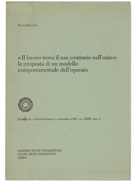 IL LAVORO TROVA IL SUO CONTRARIO NELL'OZIO": LA PROPOSTA DI UN MODELLO COMPORTAMENTALE DELL'OPERAIO. Estratto da "Studi Piemontesi", novembre 1994.