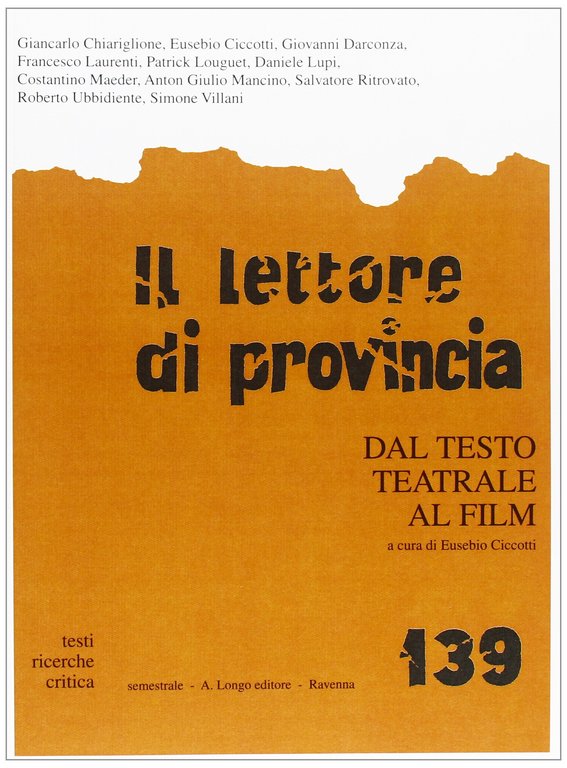 Ciccotti, E. Il lettore di provincia. Dal testo teatrale al film (Vol. 139). , Longo Angelo 2013, 120 (64327)