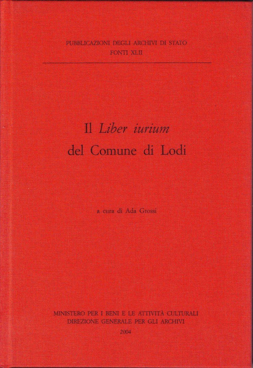 Il Liber iurium del Comune di Lodi, a cura di Ada Grossi, Ministero per i beni e le attività culturali – Direzione generale per gli achivi, s.l. (ma stampato a Genova, presso la Stamperia Editoria Brigati Glauco) 2004, pp. XC, 518, cm 24, legatura in tutta tela ed. rossa con titoli al dorso e al piatto. Collana Pubblicazioni degli Archivi di Stato. Serie Fonti, vol. XLII. Indice: Il Liber iurium de civitate Laude – Il manoscritto – Le fasi di redazione – Tradizione dei documenti – Il contenuto dei fascicoli – I notai redattori (Anselmo de Mellese – Bertolino de Lanterio – Aimerico Codecasa – Gli altri notai) – L’archivio del comune di Lodi (La camera armarii – La documentazione sciolta) – Schema generale – Criteri di edizione del Liber iurium – Abbreviazioni, fonti e bibliografia – Il Liber iurium – Repertorio cronologico dei documenti – Indice dei nomi di persona, di luogo e delle cose notevoli. Perfetto.