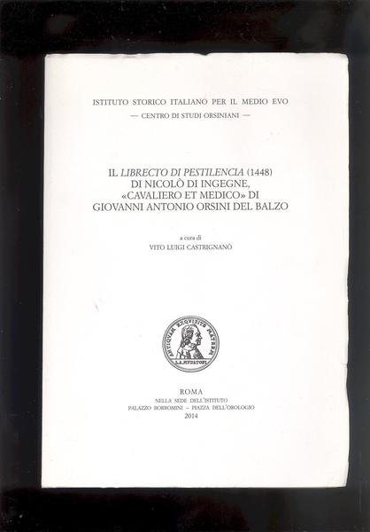 IL LIBRECTO DI PESTILENCIA ( 1448 ) DI NICOLO' DI INGEGNE, " CAVALIERO ET MEDICO " DI GIOVANNI ANTONIO ORSINI DEL BALZO.
