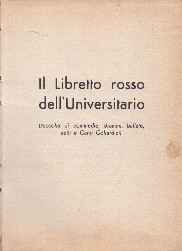 Raccolta di commedie, drammi, ballate, detti e canti goliardici. Manca la sovraccoperta