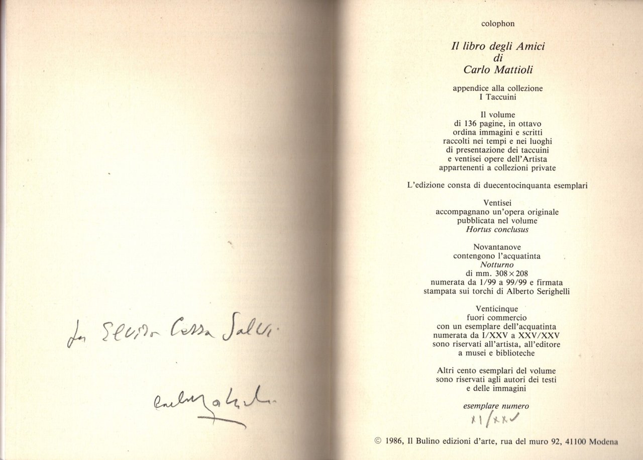 Il libro degli Amici di Carlo Mattioli Appendice alla collezione I Taccuini, scritti, immagini, luoghi