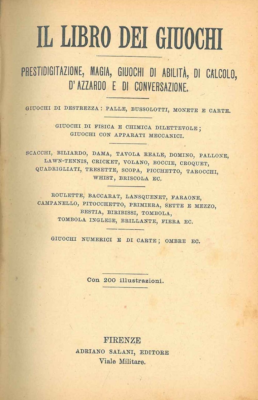 Il libro dei giochi. Prestidigitazione, magia, giuochi di abilità, di calcolo, d'azzardo e di conversazione