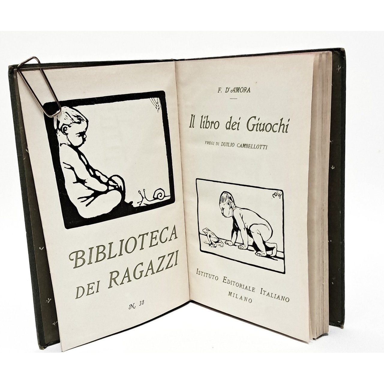 PRIMA EDIZIONE collana Costruire numero 38 Fregi di Duilio Cambellotti. Raccolta di giochi di prestigio con belle illustrazioni in b/n nel testo. Volume primi '900. Cop cartonata. Pp. 186. Ottime condizioni.