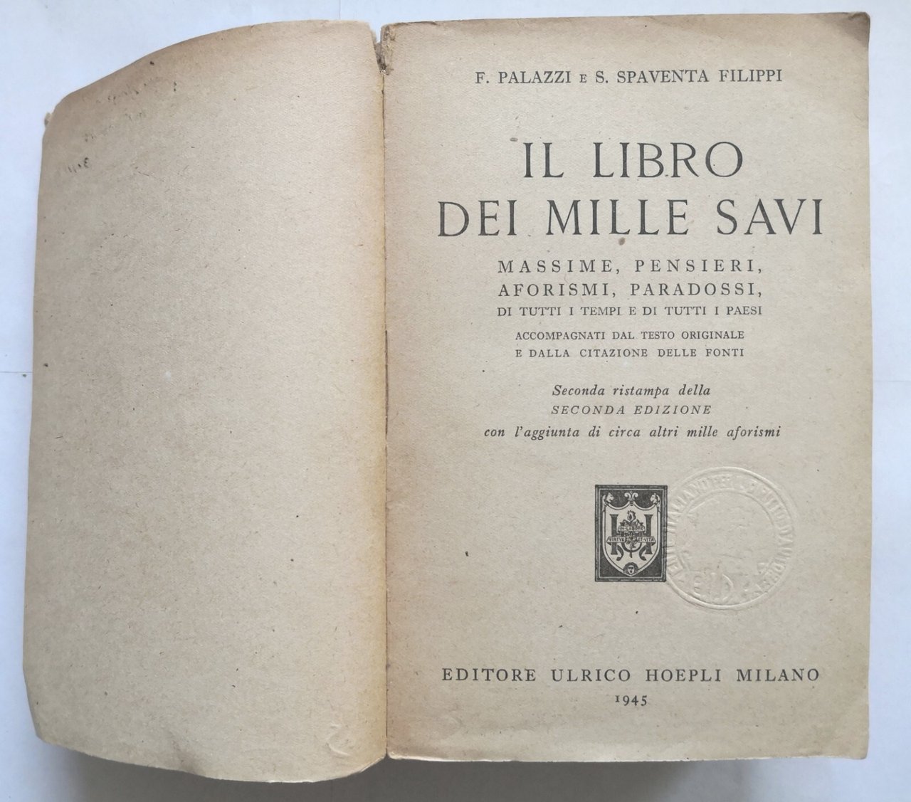 IL LIBRO DEI MILLE SAVI di Palazzi e Spaventa Filippi 1945 Hoepli Libro pensieri