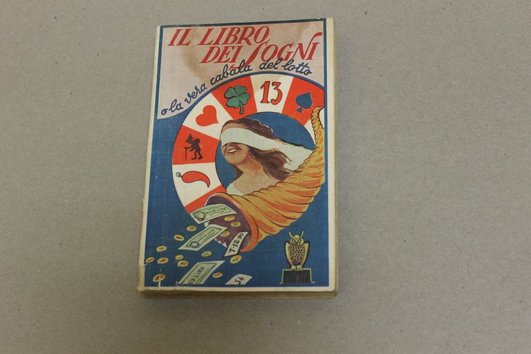 AA.VV. Il libro dei sogni. Milano, Bietti 1953 italiano, 18 11,5 pp. 240 Dorso increspato e strappato a ridosso del margine superiore e inferiore. Presenza di fioriture all'interno, gora brunita sulla sguardia anteriore. Legatura allentata delle pp.7-10