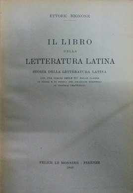 IL LIBRO DELLA LETTERATURA LATINA Storia della letteratura Latina con una scelta delle pi˘ belle pagine di prosa e di pesia dei maggiori scrittori in proprie traduzioni.