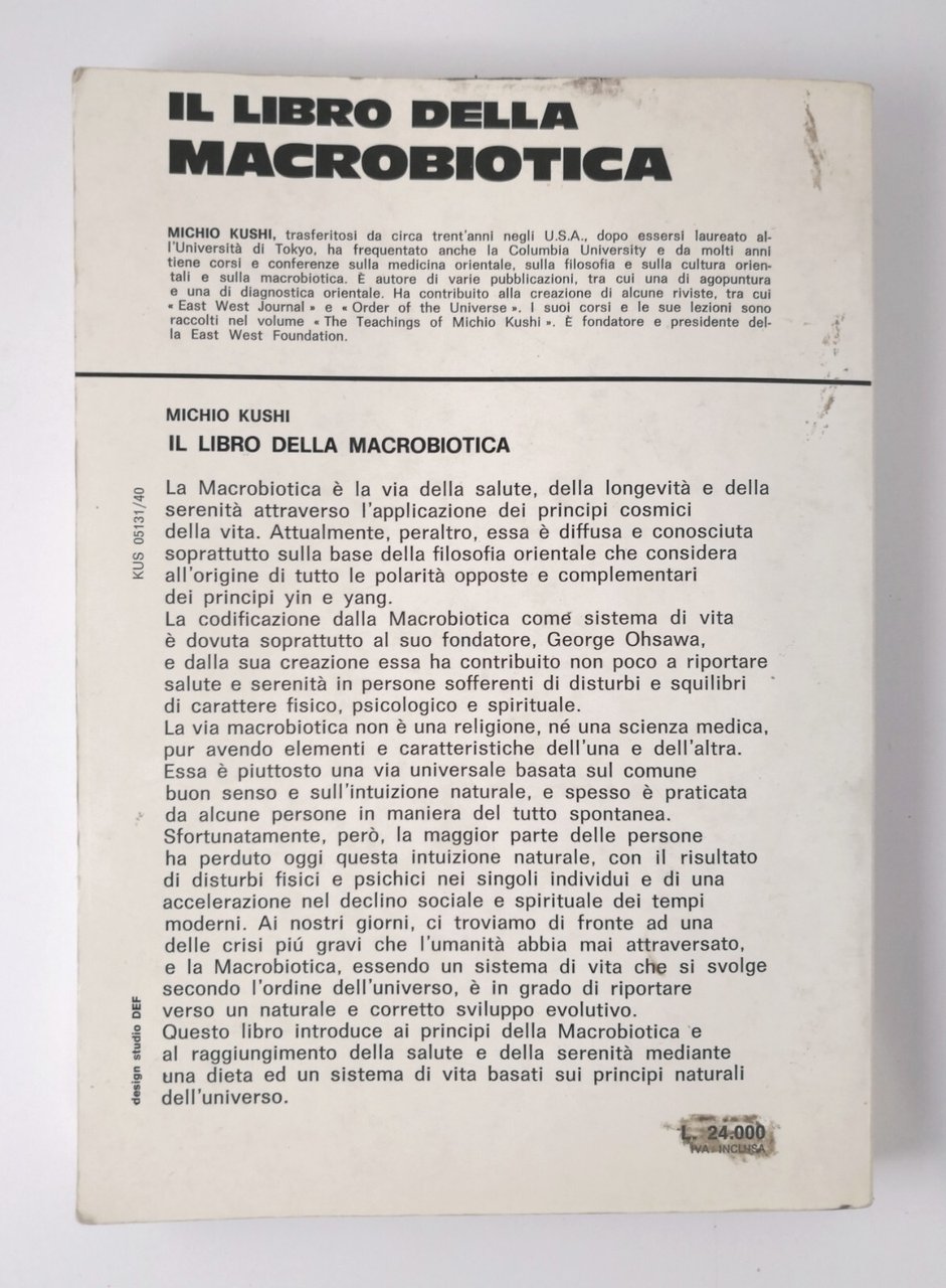 IL LIBRO DELLA MACROBIOTICA di Michio Kushi. Dieta, Alimentazione e Salute secondo la Macrobiotica.