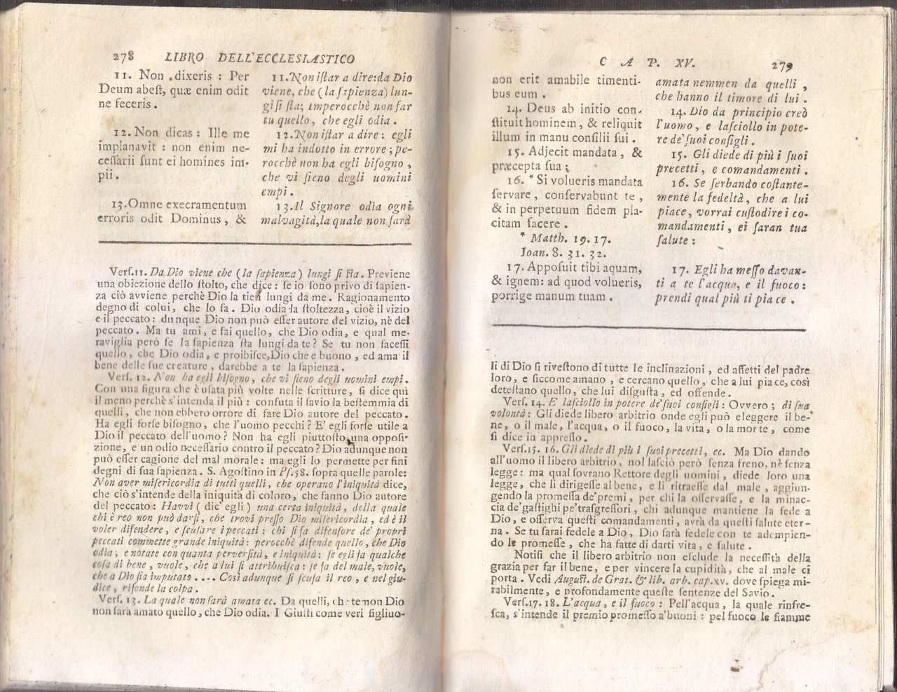 IL LIBRO DELLA SAPIENZA E L'ECCLESIASTICO 1785 Bibbia antica Martini Libro