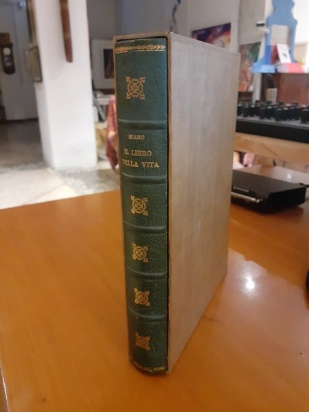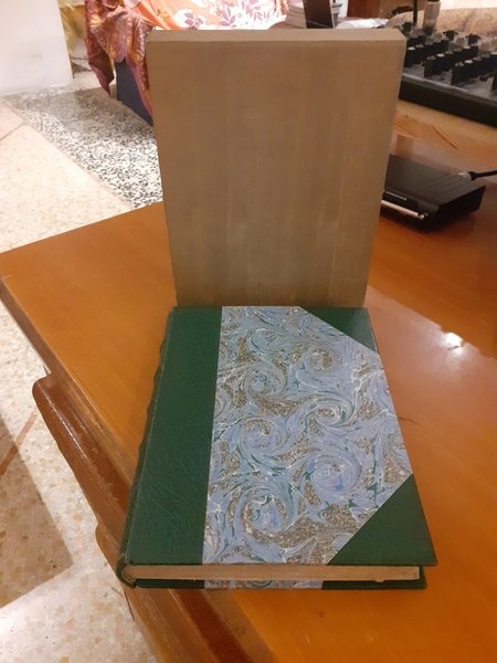 Successivamente rilegato con rilegatura in mezzapelle Rigoni, con cofanetto in legno, con scritte, decorazioni e taglio superiore in oro zecchino.