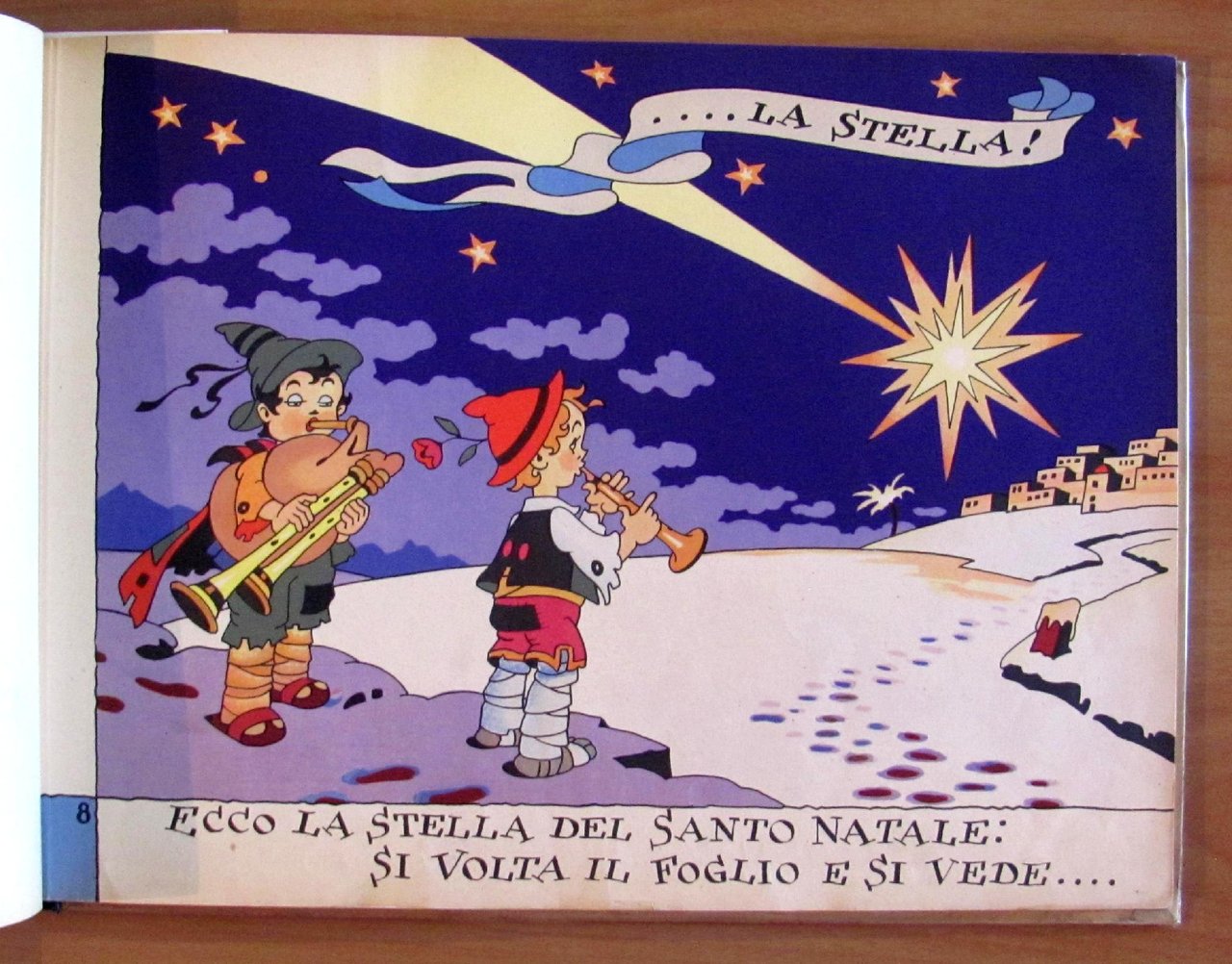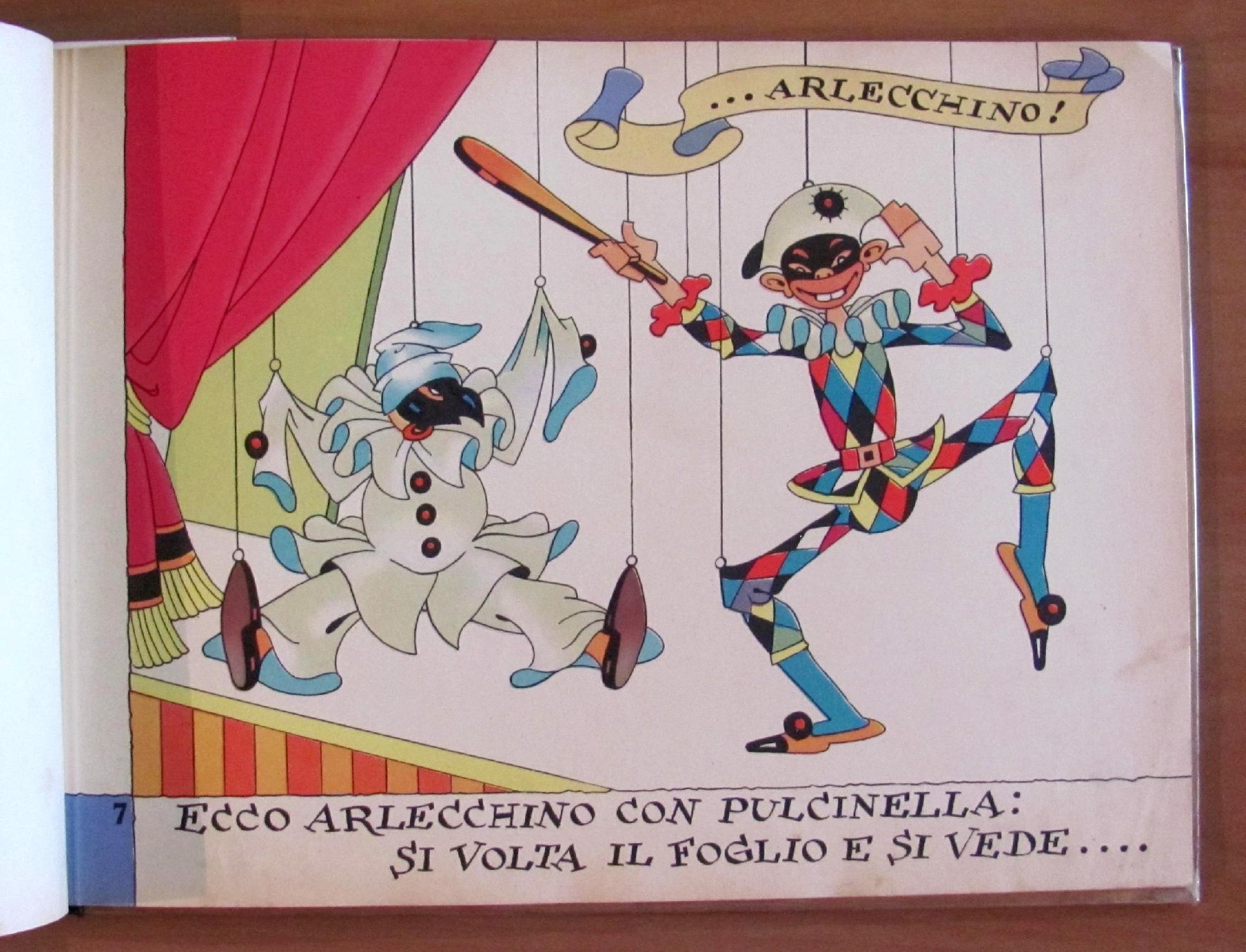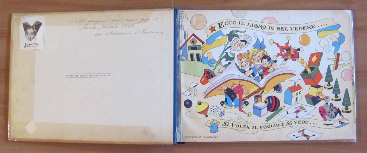 24 splendide e coloratissime tavole di Rubino. Editore Aldo Grazanti - Milano, 10 Novembre 1947. Album oblungo cartonato con dorso in tela originale. Presenta piccolissimi quasi invisibili restauri professionali agli angolini esterni delle copertine e di 3 cm al margine superiore del piatto anteriore, tutto perfettamente visibile in foto. Un Ex-Libris e una dedica del tempo in 2^ di copertina, anch'essi visibili in foto. Copertine comunque belle e fresche e pagine e colori in condizioni eccellenti. 34,5x25; pp.24 di tavole. Raro e in Buonissimo stato. , Molto buono (Very Good)