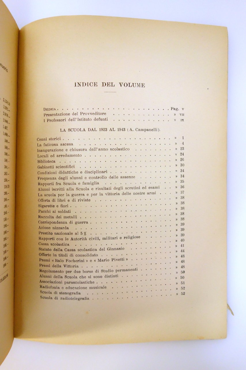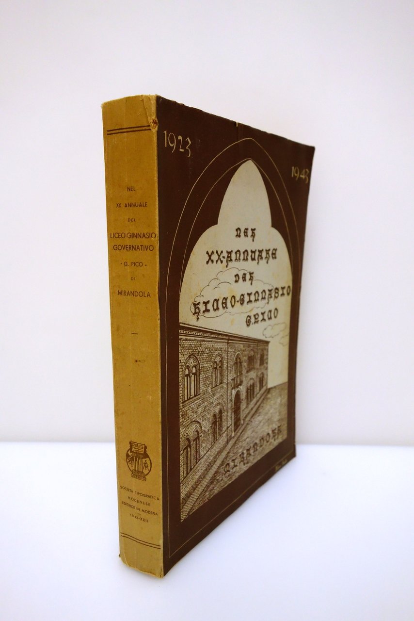 Soc. Tip. Modenese, Modena, 1943; cm 24,5x17; pp. X-360, con 7 tavv. fotografiche in b/n; brossura ed. ill. in monocromia, in copertina riprodotta la facciata del liceo a firma Silvia Barbi.