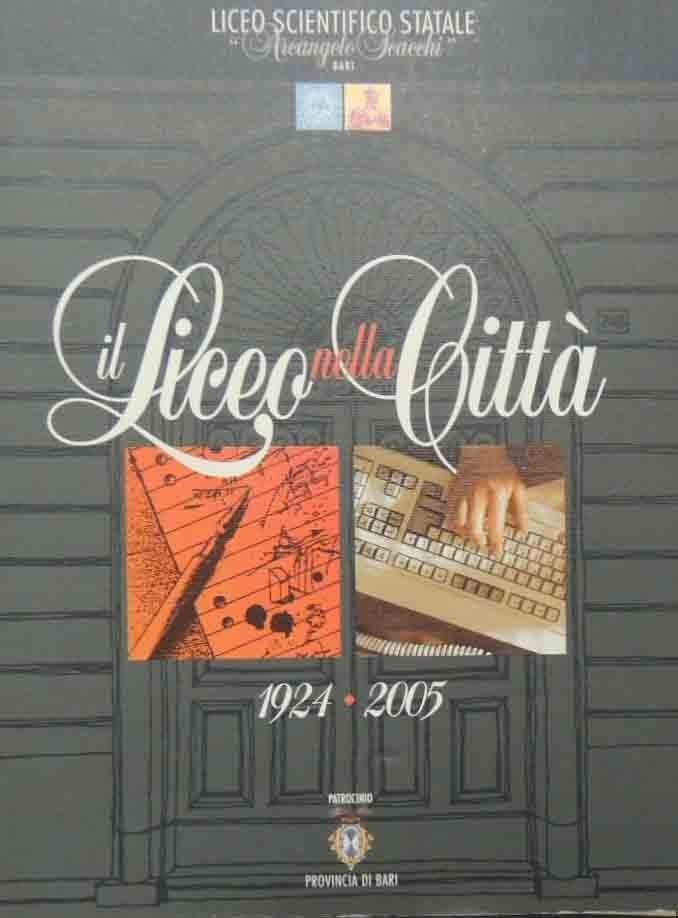 Il liceo nella città. A ottanta anni dalla istituzione del Liceo Scientifico A. Scacchi, a cura di Raffaele Macina, s.n., s.l. (ma stampato a Bari, presso la Litopress Industria Grafica s.r.l.) 2005, pp. 174, ill. b.n. e col., cm 26, br. ed. In testa al frontespizio: Liceo Scientifico Statale A. Scacchi. In calce al frontespizio: Patrocinio Provincia di Bari. Perfetto.