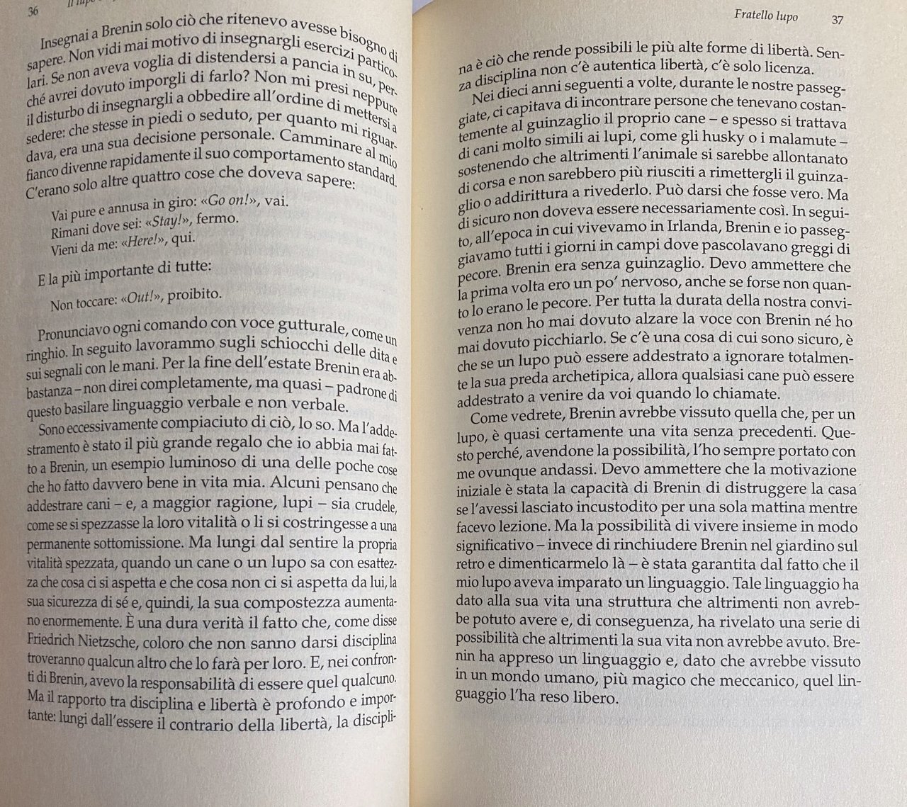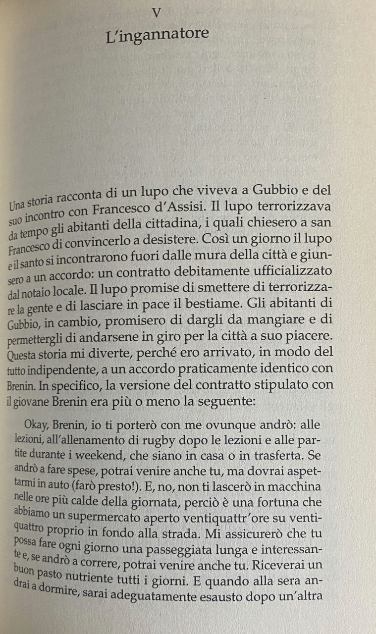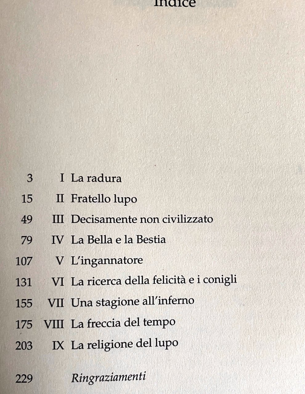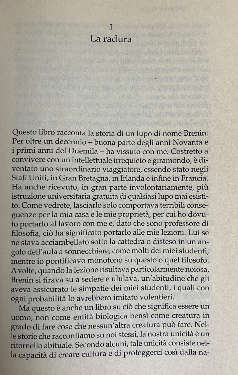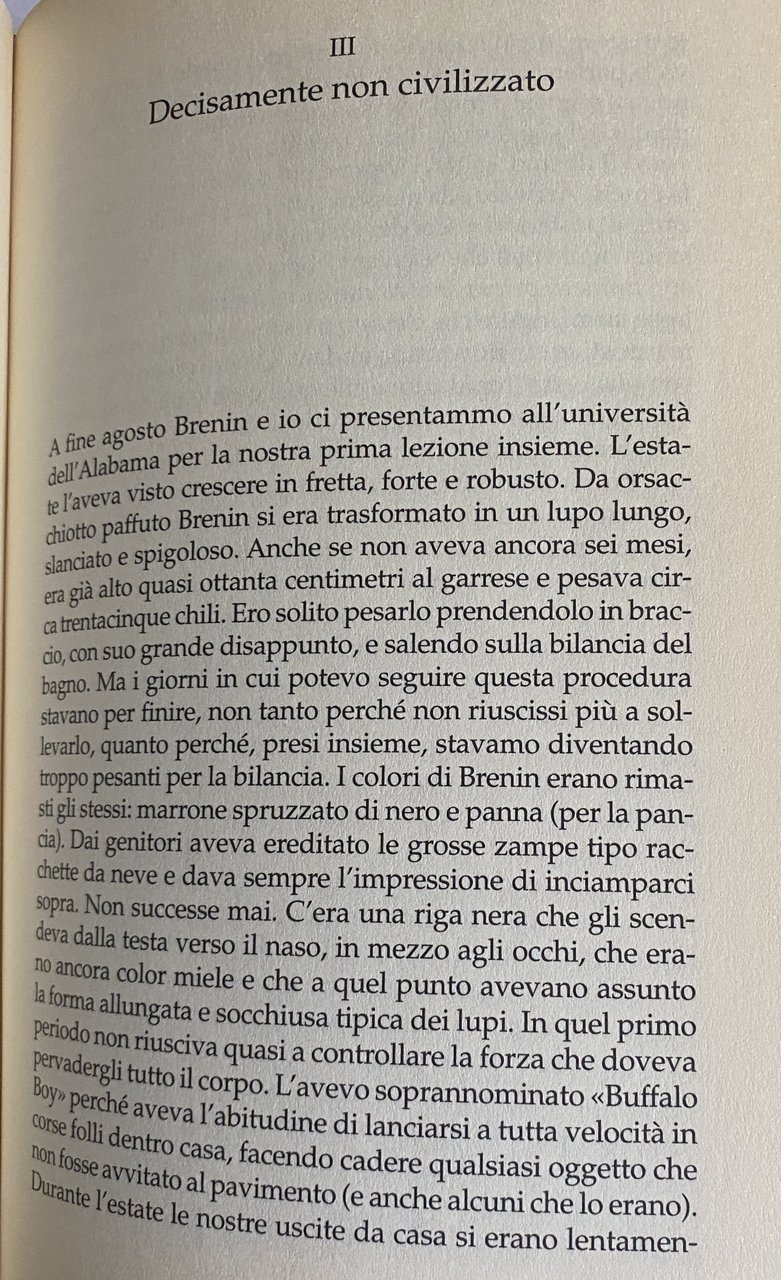 Soggetti: Animali selvatici selvaggi Lupi Etologia Filosofia La radura Fratello lupo Bestia Ingannatore Felicità Stagioni Tempo Religione Conigli Biografie Memorie Storie vere Branco Divulgazione Addomesticamento Comportamento Uomo Diritti Animalità Difesa Cattività America Avventure Vita Simbiosi Alaska Saggi Rapporto Uomini Morte Nietzsche Wittgenstein Hobbes Kant Russell Libertà Natura Collezionismo Libri rari fuori catalogo Addestramento Alabama Béziers Nina Cane Casa Civilizzazione Coniglio Correre Coyote Cucciolo Femmina Fenrisulfr Freccia Frisbee Giardino Gioco Intelligenza Irlanda Jean-Michel Kamin Kinsale Koehler Lezione Linguadoca Luit Male Malvagi Maschio alfa Morale Nikkie Tess Odino Pain au chocolat Passeggiata Pastore tedesco Piacere Pit bull Problema Ragnarök Ricordo Rugby Rugger Scimmia Scimpanzé Significato Sisifo Sociale Storia Tuscaloosa Umana Vegetariano Veterinario Yeroen Yukon Zampe Stereotipi Ferocia Aggressività Metafora Guida Viaggio interiore Identità Indomabile Esperienze Amore Ghiandola Spiaggia Contratto Cork City Corso Creature Combattere Irish Ferries Lee Valley Park Machiavellico Malamute Malizia Giocare Schemi Teodicea Pensiero Camminare Etica animale Sperimentazioni Consapevolezza Bernard Baars Caledonian Crow Capacità Contrattualismo Mangiare Emozioni Valore Interessi Jeremy Bentham Giustizia Kantian Kymlicka Marc Bekoff Differenze Obblighi Crimine Peter Singer Principio Sentimenti Sofferenza Tom Regan Utilitaristico Virtù Racconti Letteratura Narrativa Padrone Ubbidienza Regole Qualità Disciplina Predatori Guinzaglio Linguaggio Comunicazione Comandi Seduto Addestrare Adattamento Wild Animals Wolves Ethology Philosophy The Clearing Brother Wolf Beast Deceiver Happiness Seasons Time Religion Rabbits Biographies Memories True Stories Pack Disclosure Domestication Behavior Man Rights Animality Defense Captivity Adventures Life Symbiosis Essays Relationship Men Death Freedom Nature Collecting Rare Books Out of Print Training Dog Home Civilization Rabbit Run Puppy Female Arrow Garden Game Intelligence Ireland Lesson Languedoc Evil Wicked Alpha Male Walk German Shepherd Pleasure Problem Memory Monkey Chimpanzee Meaning Sisyphus Social Human History Vegetarian Veterinarian Paws Stereotypes Ferocity Aggression Metaphor Guide Inner Journey Identity Untamable Experiences Love Gland Beach Contract Course Creatures Fight Malice Play Patterns Theodicy Thought Walking Animal Ethics Experimentations Awareness Capacity Contractualism Eating Emotions Value Interests Justice Differences Obligations Crime Principle Feelings Suffering Utilitarian Virtue Literature Fiction Master Obedience Rules Quality Discipline Predators Leash Language Communication Commands Sit Train Adaptation