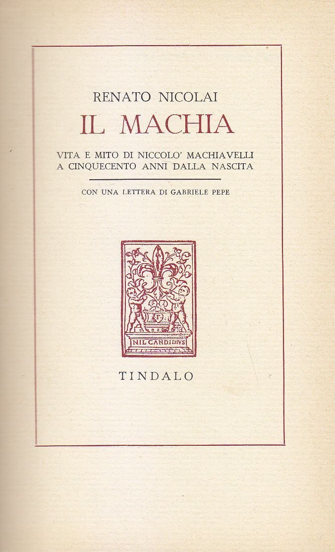 Il Machia di Renato Nicolai 1969 Tindalo libro sulla vita di Niccolò Machiavelli