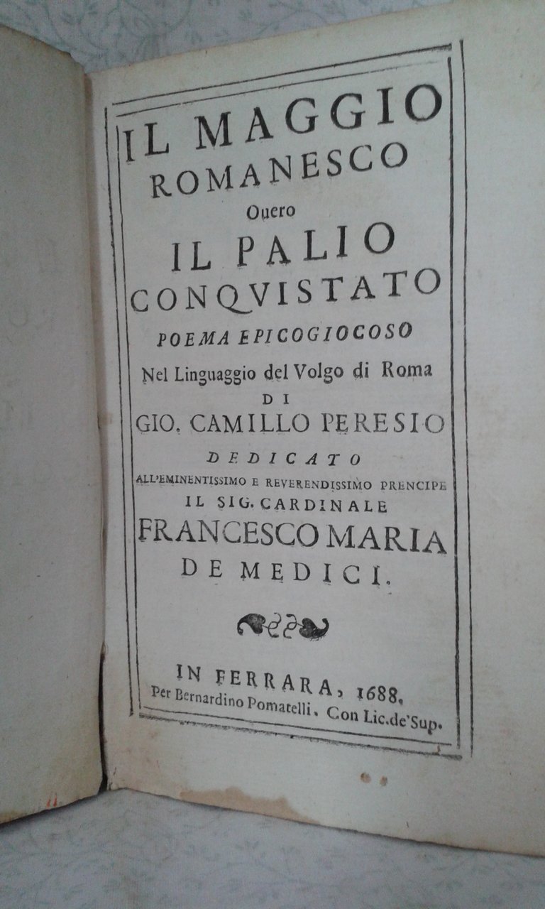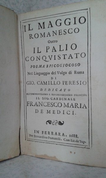 IL MAGGIO ROMANESCO overo IL PALIO CONQUISTATO. Poema epicogiocoso nel linguaggio del Volgo di Roma