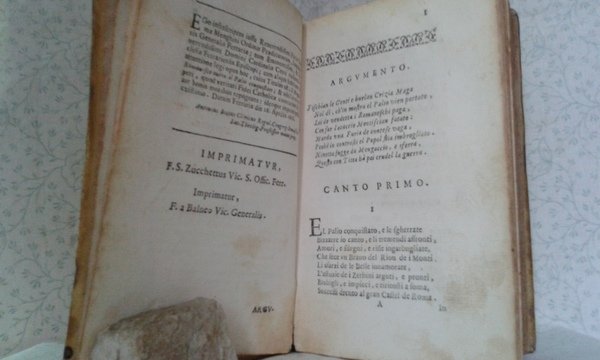 Volume in 8 legato in pergamena, dorso a nervi, sguardie, occhiello, frontespizio, due carte, 446 pp., carta d'errata. Poema eroicomico composto sul fondamento storico della tirannide esercitata in Roma per sette mesi da Cola di Rienzo nel lontano 1437. Lo spunto per una carrellata d'eccezionale ed intrigante racconto-chiacchierata a mo' dei narratori di strada. I personaggi vengono fatti parlare in romanesco e discoprono tutta la loro umanit e complessit. Un bello spaccato di societ popolana narrato con verve e capacit stilistica. Prima, preziosa e non comune edizione, in bello stato, poche e non influenti mende d'uso.