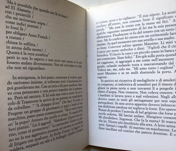 Parole che ormai lo sfiniscono e che cerca di espellere insieme al ricordo di donne traditrici e ossessive, al racconto di un'impossibile guerra alla vecchiaia, alla memoria di un'infanzia dominata da sette possenti zie, tutte sposate con lo stesso uomo.