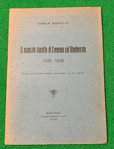 In 4° piccolo; 25, (3) pp. Brossura editoriale con titolo impresso in nero al piatto anteriore. Prima edizione in forma di monografia (lo scritto era comparso sul Bollettino Storico Cremonese del 1941) di questo studio dedicato alla questione del Monferrato tra il 1559 ed il 1628. In ottime condizioni di conservazione.