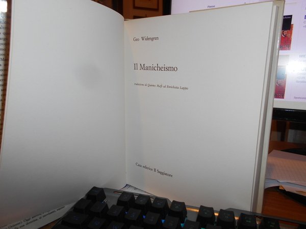 GEO WIDENGREN. Milano, Il Saggiatore, 1964. Il Manicheismo. Traduzione di Quirino Maffi ed Enrichetta Luppis. In-8°, tela edit. bleu con titolo al dorso, sovracopertina ill. a col. 320 pp. con 56 tavole a colori e in bianco e nero. In ottimo stato di conservazione. Uff. stanz. TV. mob. nostro sinistra basso