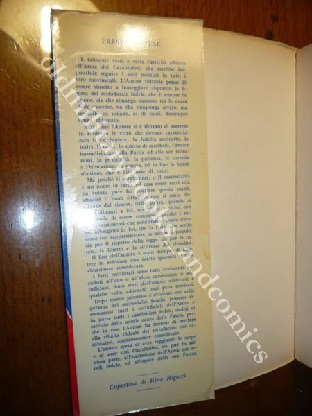 DESCRIZIONE: Edizioni Ludus Firenze 1961, br. ed. ill. pp. 311 in 8° L'A. nella persona del Maresciallo Boschi, è evidente che tratteggia tutti i sottufficiali dell'Arma e tutti i Carabinieri dediti al servizio della nobile causa della Patria. Tutti i fatti raccontati sono realmente accaduti sono solo stati elaborati dall'A., qualche volta adornati, ma mai travisati. Indice completo in foto a fine inserzione. CONDIZIONI: Discrete, vol. con lievi pecche alla cop., però al retro presenta uno strappo abbastanza evidente come da foto, riparabile con carta giapponese. PESO / WEIGHT: 401 gr. without package