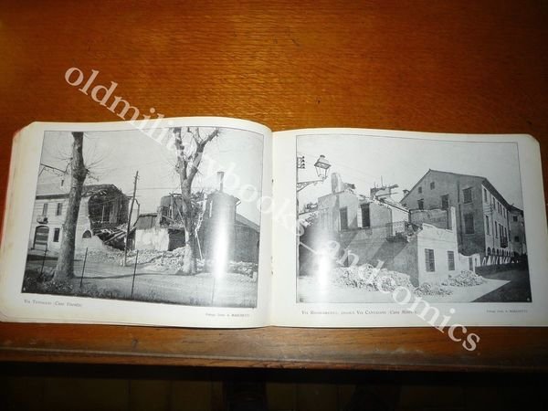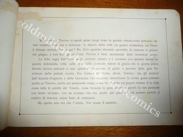 DESCRIZIONE: DOMENICO LONGO, TREVISO/BOLOGNA 1919 In 8° grande oblungo, pagg. 20 non numerate, brossura, 1 pianta della citta' con le indicazioni dei luoghi piu' colpiti e 30 tavole fotografiche fuori testo di A. Marchetti. Immagini dei danni per i bombardamenti aerei subiti dalla citta' di Treviso durante la prima Guerra. Indice completo in foto. CONDIZIONI: Ottime, normali segni d'uso. PESO / WEIGHT: 122 gr. without package