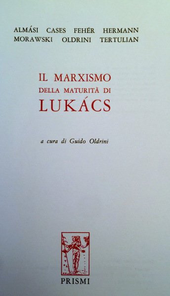 Chi vada sfogliando la saggistica italiana - ma non italiana soltanto - su Lukacs ne riceve in genere l'una o l'altra di queste impressioni: o che storicamente non esista se non il Lukacs giovane, l'autore (premarxista) della Storia del dramma moderno, dei saggi apparsi col titolo L'anima e le forme, dei lavori estetici di Heidelberg, della Teoria del romanzo, e quello (protomarxista) di Storia e coscienza di classe; oppure che ci sia bensì in lui anche un'ulteriore fase storica di sviluppo, ma che essa, lungi dal segnarne la maturità, ne segni piuttosto l'irreversibile decadenza e involuzione.