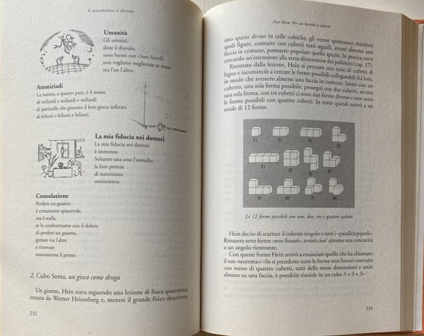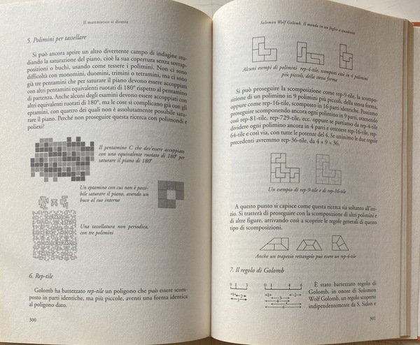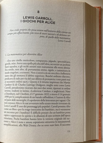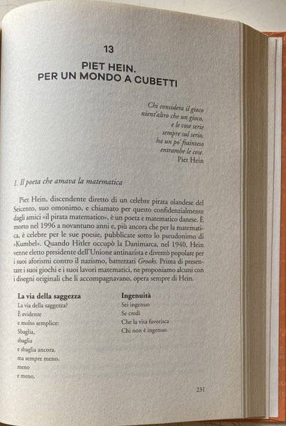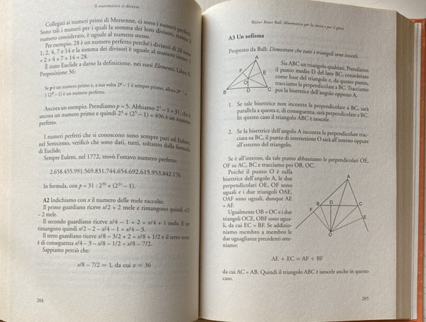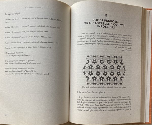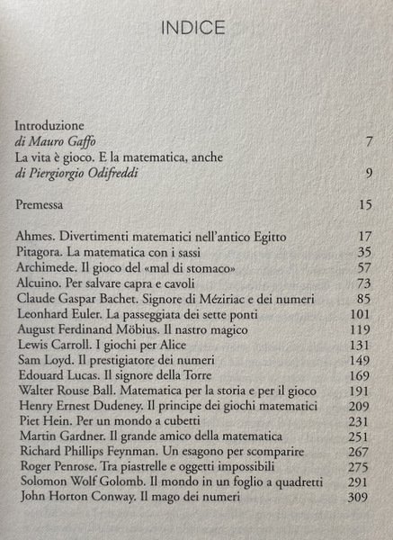 Soggetti: Matematica, Calcolo, Giochi matematici, Esercizi, Problemi, Quiz, Test, Enigmi, Enigmatica, Tempo libero, Apprendimento, Soluzioni, Storici, Logica, Numeri, Sequenze, Teoremi, Teorie matematiche, Geometria, Figure geometriche, Scienza, Scientifici, Bestseller, Curiosità, Indovinelli, Passatempo, Allenamento mentale, Divertimento, Spunti, Esempi, Spiegazioni, Dimostrazioni, Ragazzi, Adulti, Biografie, Storia, Aneddotica, Aneddoti, Regole, Leggi, Opere di divulgazione scientifica, Antico Egitto, Allenare la mente, Giocare, Immagini, Parole, Mathesis, Martin Gardner, Letteratura, Pitagora, Archimede, Edouard Lucas, Einstein, Newton, Moderni, Richard Phillips Feynman, Polibio, Roger Penrose, John Conway, Polimath, Politecnico, Gioco, Formule, Calcoli, Scienze esatte, Pratica, Teoria, Intuizione, Pacioli, Anagrammi, Cifre, Codici cifrati, Quadrato, Cerchio, Triangolo, Operazioni aritmetiche, Aritmetica, Chiave, Rebus, Russell, Giuseppe Peano, Algoritmi, Equazioni, Probabilità, Dadi, Cardano, Galileo, Pascal, Sistemi, Lancio, Dudeney, Fiammiferi, Mosse, Punti, Monete, Insieme, Gruppi, Diagonale, Croce, Rettangolo, Doomsday, Linee, Retta, Giocatori, Coppie, Tartaglia, Studi, Pedina, Scacchiera, Uguali, Prove, Possibilità, Divisione, Resto, Numeri primi, Divisibilità, Pari, Dispari, Dimensioni, Libri Vintage Fuori catalogo, Collezionismo, Piet Hein, Magia, Ahmes, Alcuino, Claude Gaspar Bachet, August Ferdinand Möbius, Samuel Loyd Edouard Lucas, Walter Rouse Ball, Solomon Wolf Golomb, Torre di Hanoi, Rompicapo, Intelligenza, Michael Gromov, Anello, Filastrocche, Egizi, Gauss, Labirinto, Puzzle, Alice nel paese delle meraviglie, Nastro, Mathematics, Calculation, Mathematical games, Exercises, Problems, Quizzes, Puzzles, Enigmatics, Leisure, Learning, Solutions, Historical, Logic, Numbers, Sequences, Theorems, Mathematical theories, Geometry, Geometric figures, Science, Scientific, Curiosities, Riddles, Pastime, Mental training, Fun, Ideas, Examples, Explanations, Demonstrations, Kids, Adults, Biographies, History, Anecdotes, Rules, Reads, Popular science works, Ancient egypt, Train the mind, Play, Pictures, Words, Literature, Pythagoras, Archimedes, Moderns, Polybius, Polytechnic, Game, Formulas, Calculations, Exact sciences, Practice, Theory, Intuition, Anagrams, Figures, Codes, Square, Circle, Triangle, Arithmetic operations, Key, Algorithms, Equations, Probability, Dice, Cardan, Galilei, Systems, Throwing, Matches, Moves, Points, Coins, Together, Groups, Cross, Rectangle, Lines, Players, Pairs, Studies, Pawn, Chessboard, Equal, Evidence, Chance, Division, Rest, Prime numbers, Divisibility, Even, Odd, Dimensions, Out of print books, Collectibles, Magic, Tower, Intelligence, Ring, Nursery rhymes, Egyptians, Labyrinth, Alice in Wonderland, Tape