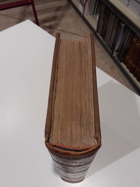 Legatura coeva in mz.pelle con piatti in telo e fregi impressi in oro al dorso.
