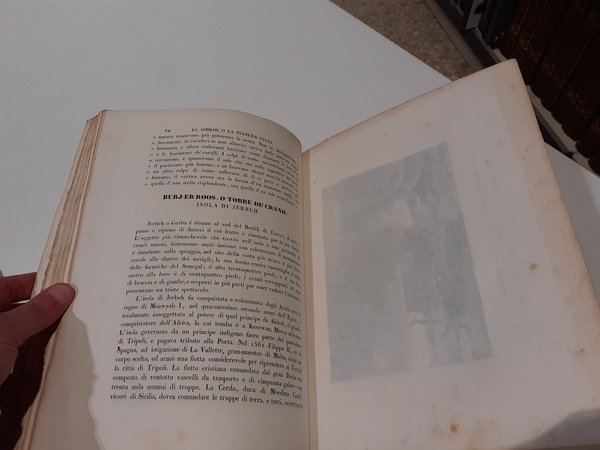 Marcate fioriture, sia nelle pagine di testo che nelle tavole, tutte protette da velina. Classica operazione dell'editoria italiana di metà Ottocento, con utilizzo di incisioni su acciaio impresse a Londra per illustrare una comunque non banale pubblicazione sulle bellezze del Mar Mediterraneo.