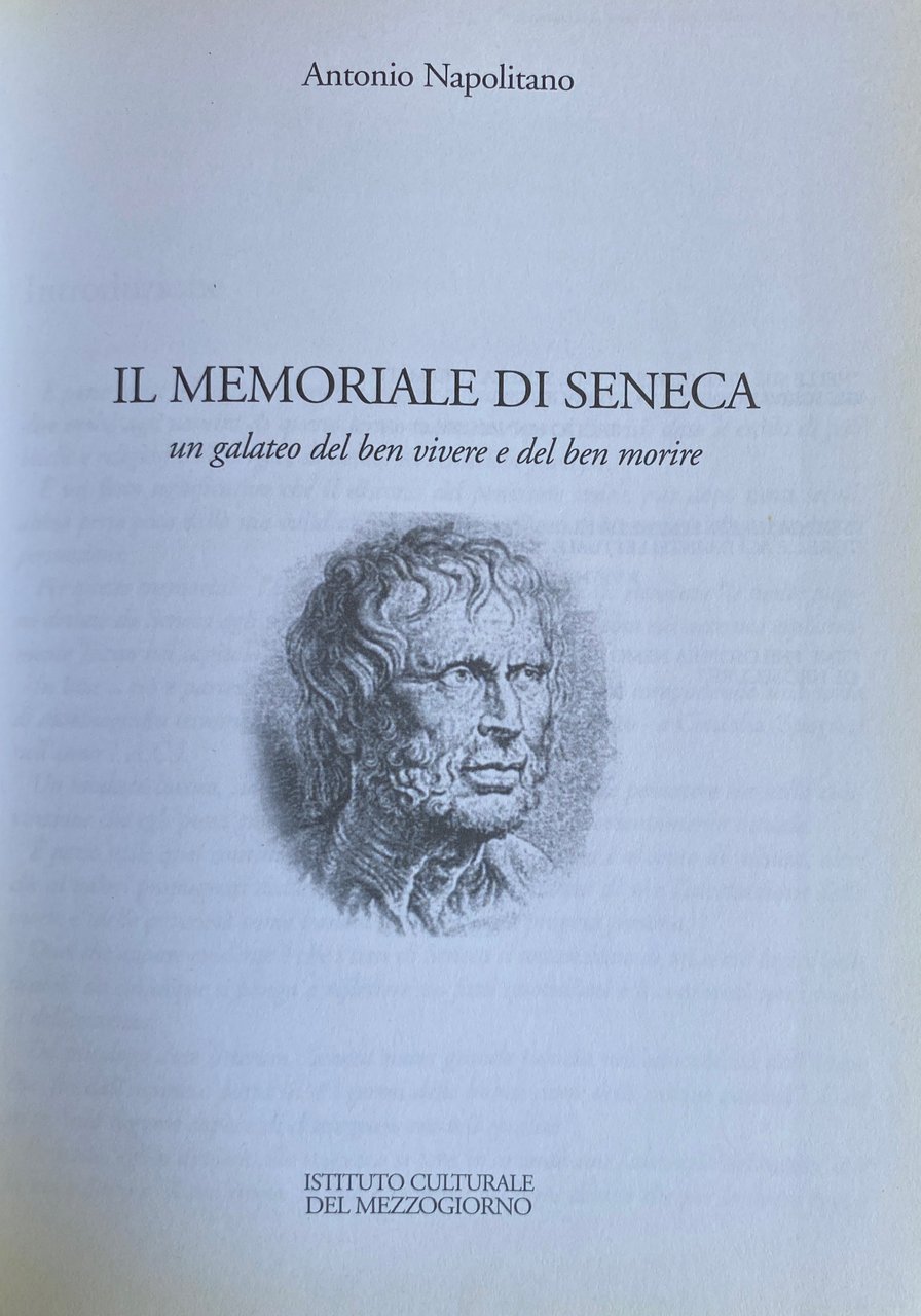 È parso lecito all'autore di queste pagine ritenere che l'opera di Seneca possa ancora dire molto agli uomini di questo terzo millennio, epoca di crisi, dato il crollo di fedi laiche e religiose e l'emergere di deboli ed ermetiche filosofie. È un fatto significativo che il discorso del pensatore stoico, pur dopo tanti secoli, abbia perso poco della sua validità, anche grazie alla sua chiarezza e alla capacità di persuasione. Per questo memoriale l'autore ha ipotizzato che siano state ritrovate "le molte pagine dettate da Seneca agli scrivani nelle ultime ore di vita", cosa cui accenna esplicitamente Tacito nel capitolo XV degli "Annali". Antonio Napolitano (NA, 1928), saggista, rende qui un riconoscente omaggio al pensatore stoico la cui opera può, ancora oggi, dire molto agli uomini. In questo MEMORIALE l'Autore ha cercato di mettere in luce i probabili nessi tra le vicende della vita di Seneca e le idee sulle quali si fonda la sua dottrina morale.