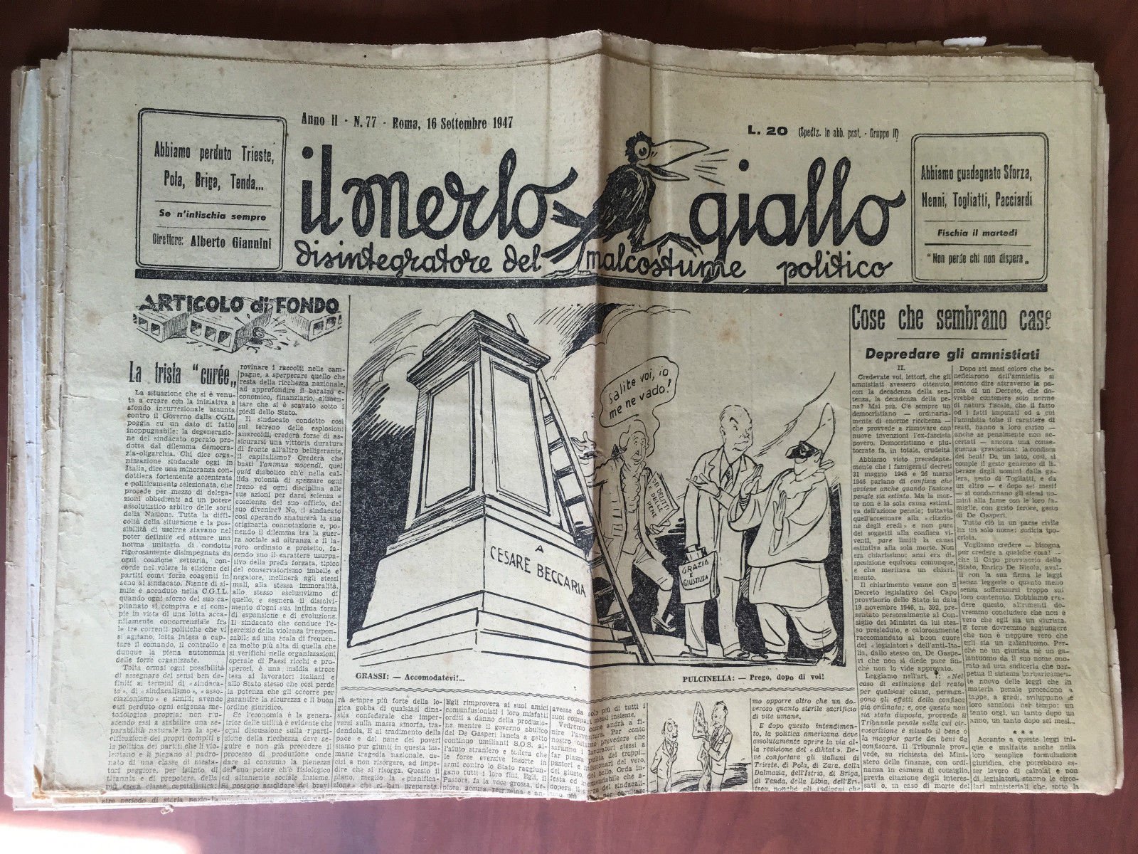 Il Merlo giallo Anno II n^ 77 Roma 16 Sett. 1947 Dir. Alberto Giannini E21701