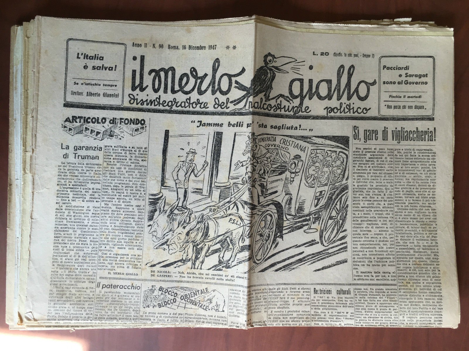 Il Merlo giallo Anno II n^ 90 Roma 16 Dicemb 1947 Dir. Alberto Giannini - E21704