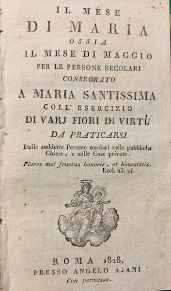 Il mese di Maria ossia il mese di maggio, per le persone secolari consacrato a Maria Santissima coll'esercizio di Varj Fiori di Virtù da praticarsi dalle suddette Persone secolari nelle pubbliche Chiese, e nelle Case private.