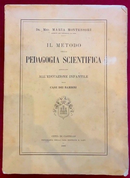 4to (cm. 28,3), 283(1) pp. Con 16 tavv. f.t. (di cui una ripiegata). Brossura editoriale. Esemplare in ottimo stato di conservazione. Prima rara edizione dell’opera più importante della dottoressa Montessori (1870-1952) prima donna a laurearsi in medicina in Italia, all’Università ‘La Sapienza’ di Roma. Il suo ‘metodo’ è ancora oggi adottato in migliaia di scuole di tutto il mondo.