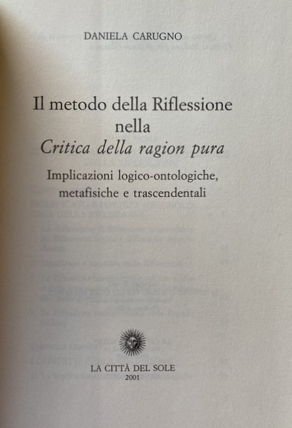 IL METODO DELLA RIFLESSIONE NELLA CRITICA DELLA RAGION PURA. IMPLICAZIONI LOGICO-ONTOLOGICHE, METAFISICHE E TRASCENDENTALI