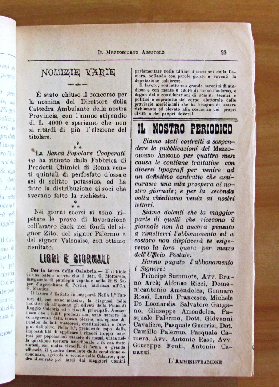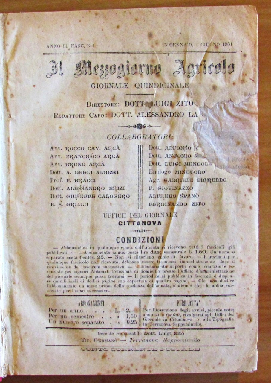 Il Mezzogiorno Agricolo - Anno II Fasc. 3 - 4 Gennaio 1901 / Anno VI Fasc. 11 - 12 Dicembre 1904 Giornale Quindicinale