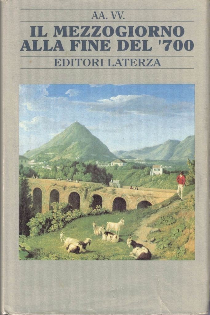 Il Mezzogiorno alla fine del Settecento, antologia a cura di Francesco Di Battista, introduzione di Antonio Maria Fusco, Editori Laterza (Gius. Laterza e Figli Spa), Roma-Bari 1992, pp. XXVII, 388, cm 21, legatura in tutta tela ed. con titoli al dorso e sovraccoperta. Titolo alla sovraccoperta: Il Mezzogiorno alla fine del ‘700. Collana Classici meridionali. Opera promossa e realizzata con il contributo della Caripuglia Spa. Indice: Luigi De Rosa, Prefazione – A. M. Fusco, Introduzione – Parte prima. Lo stato delle cose: la realtà del regno di Napoli nella descrizione e interpretazione degli economisti (Il territorio – La capitale e le province – La popolazione – L’agricoltura – Le manifatture – Il commercio – Le classi sociali – Moneta e cambi) – Parte seconda. L’arte del governo: l’intervento riformatore degli economisti (Verso nuove politiche economiche e sociali – Per una nuova agricoltura – Protezione alle manifatture – Politica commerciale – Le finanze – Politica monetaria – Note ai testi – Cenni biografici sugli autori dei brani riprodotti. Leggere tracce d’uso a sovraccoperta e tagli, minime fioriture a carte di guardia e tagli, per il resto buona copia, con interno perfetto.
