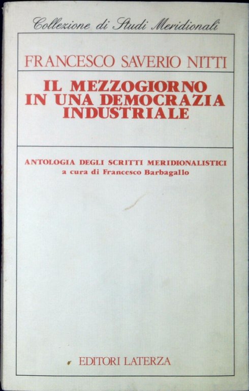Nitti, Francesco Saverio; a cura di Barbagallo, Francesco Il Mezzogiorno in una democrazia industriale : antologia degli scritti meridionalistici. Roma ecc.!, Laterza 1987, XLV, 386 p. ; 21 cm. (48130)